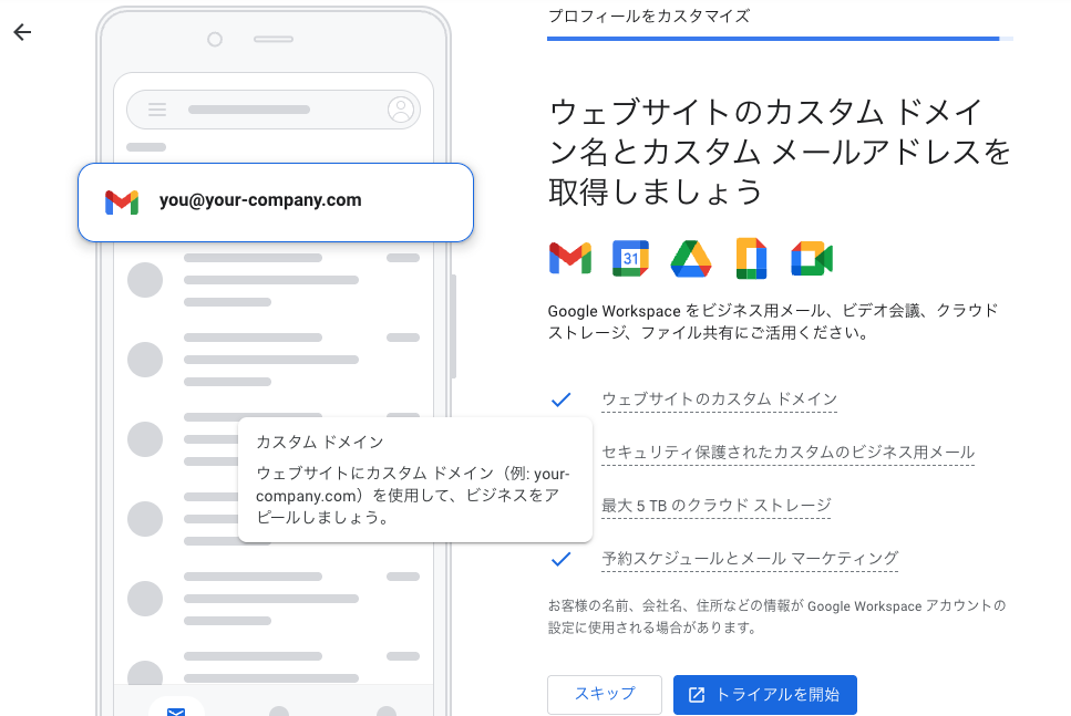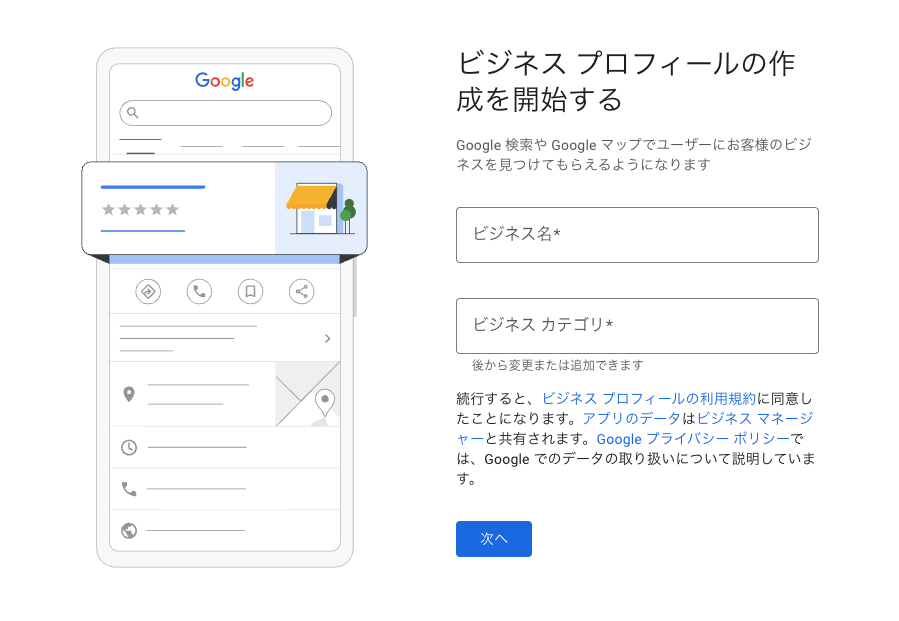 ビジネスプロフィールの作成を開始しましょう。