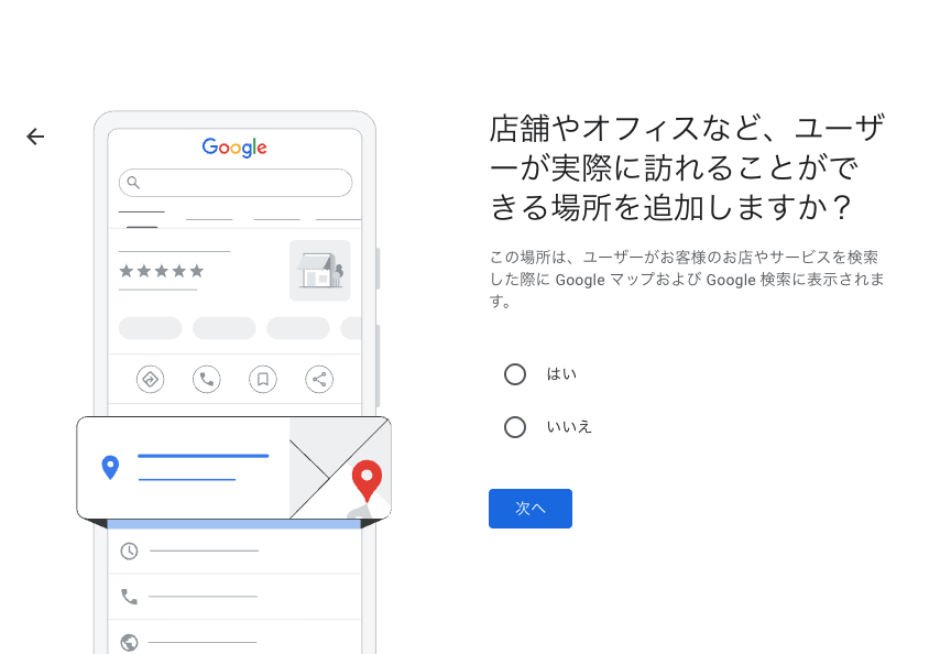 この次に「店舗の場所を追加しますか?」という選択肢が出てくるはずです。