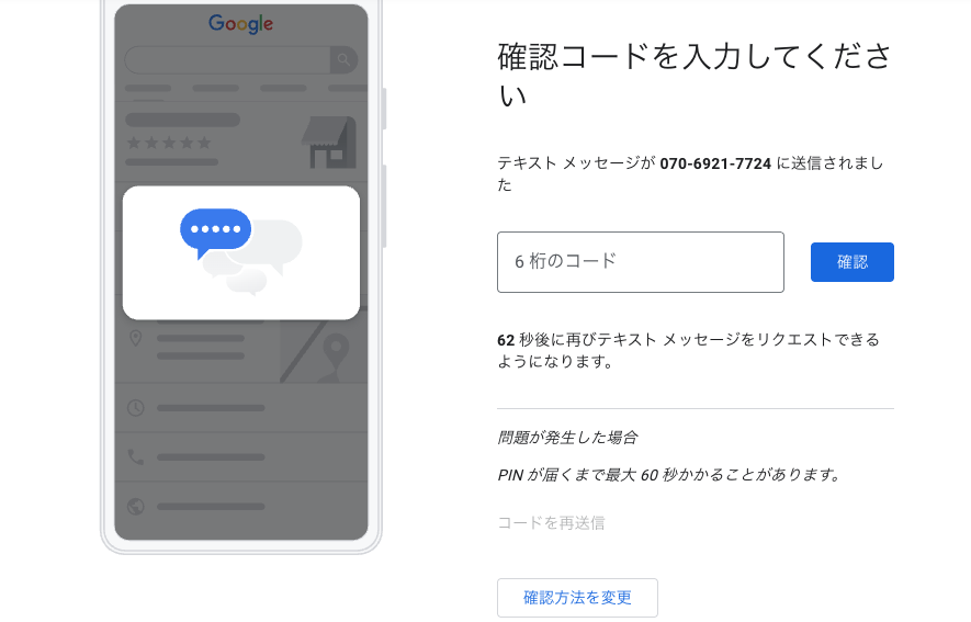 今回は携帯電話で「確認コード」をSMSで送る方法で解説します。