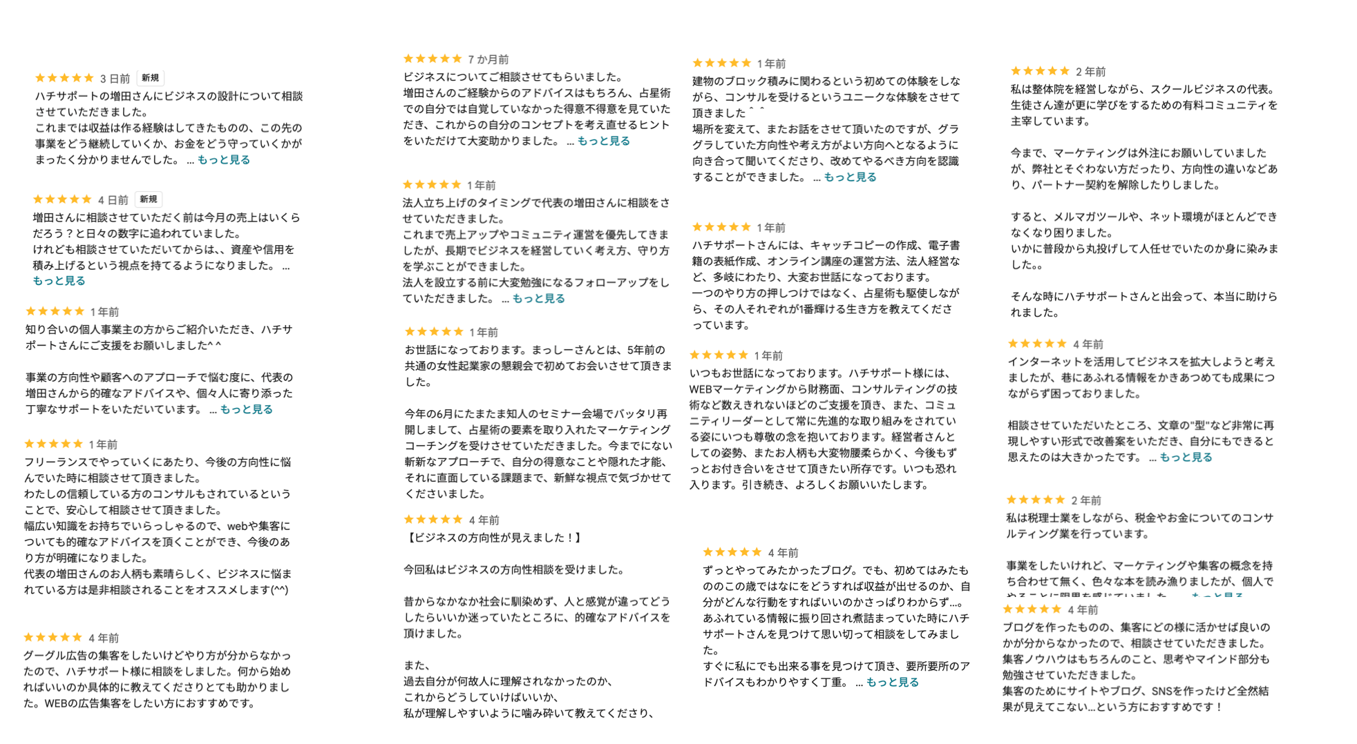 以上、色んなメンバーさんの声を掲載させていただきました。 これらを振り返ってみて思うのが、 「年数を経るにしたがってドンドンレベルアップしていくことができる」 というメリットがあります。 私が起業初期に募集していたコンサル企画からリピートしていただいている生徒さんの例だと、5年ほど私と関わっていただいているメンバーさんの成長ケースモデルとしては、ゼロから法人化を達成されたようなメンバーさんもいらっしゃいます。